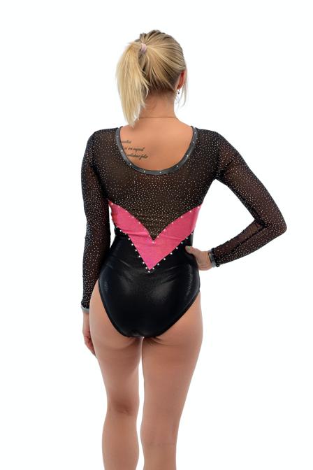 Купальник женский для спортивной гимнастики SIGOA 5306 черный с нежно-розовым без рукава