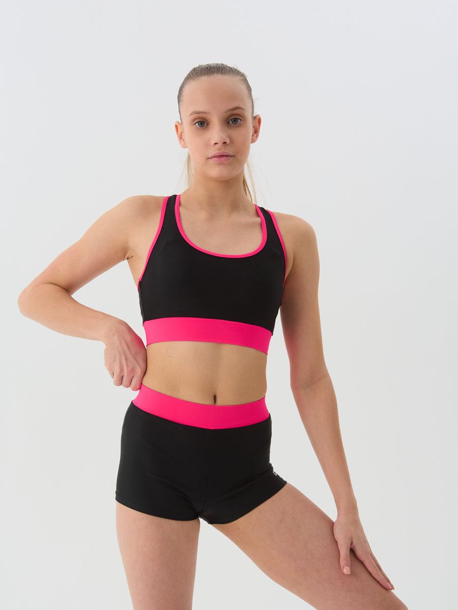 Комплект из шорт и топа для спортивной гимнастики GK Sport К199Р черный с розовым