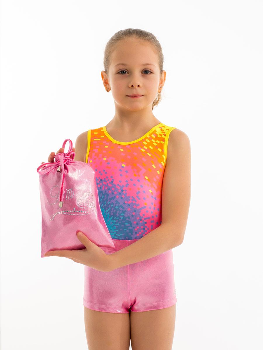 Купальник женский для спортивной гимнастики GK Sport 202-35 розовый с цветным рисунком без рукава