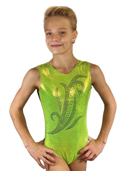 Купальник женский для спортивной гимнастики Lime Black GKSport 142 салатовый без рукава