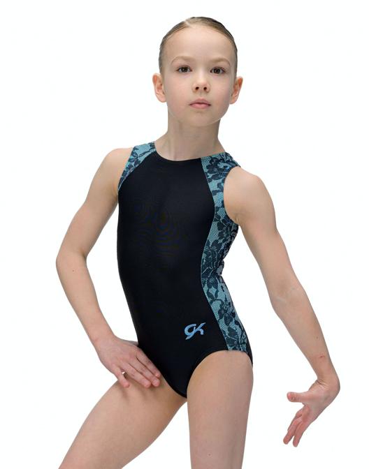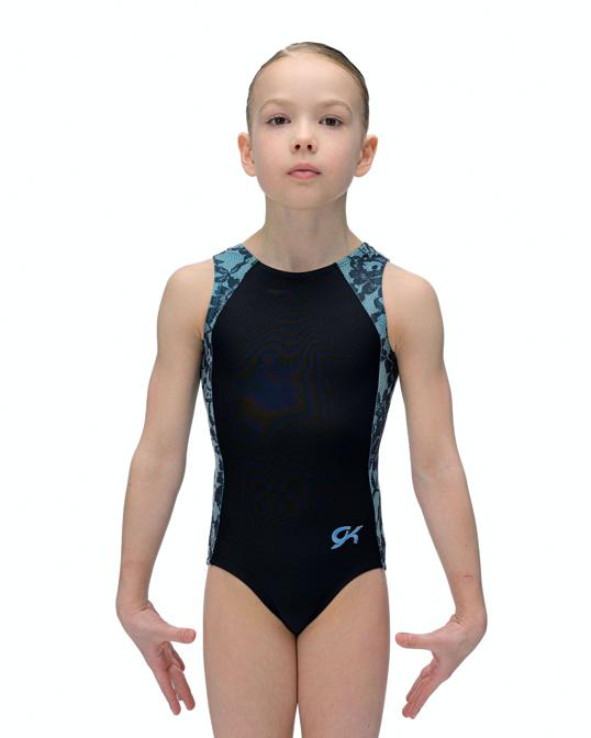 Купальник женский для спортивной гимнастики GK Elite 9705 черный с голубым без рукава