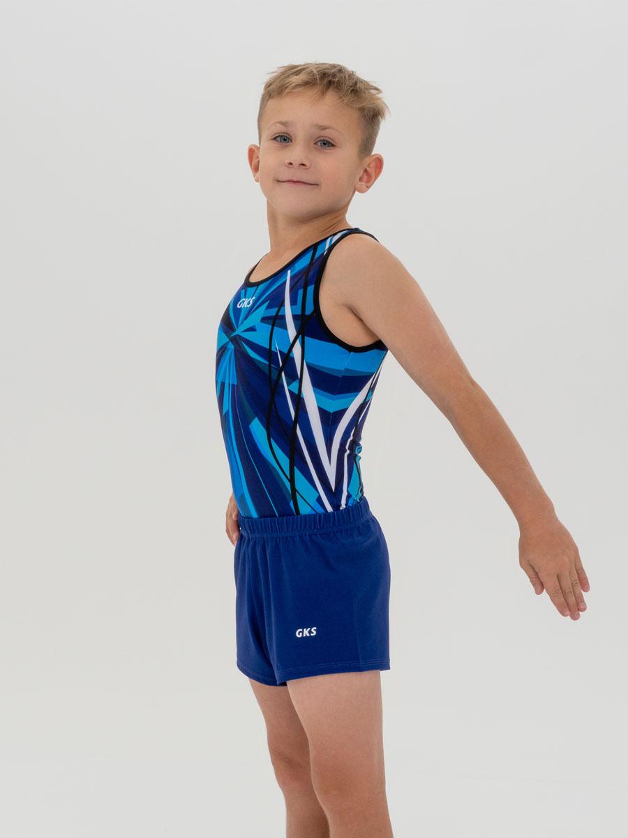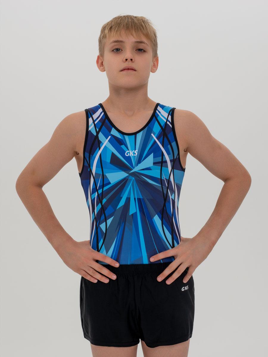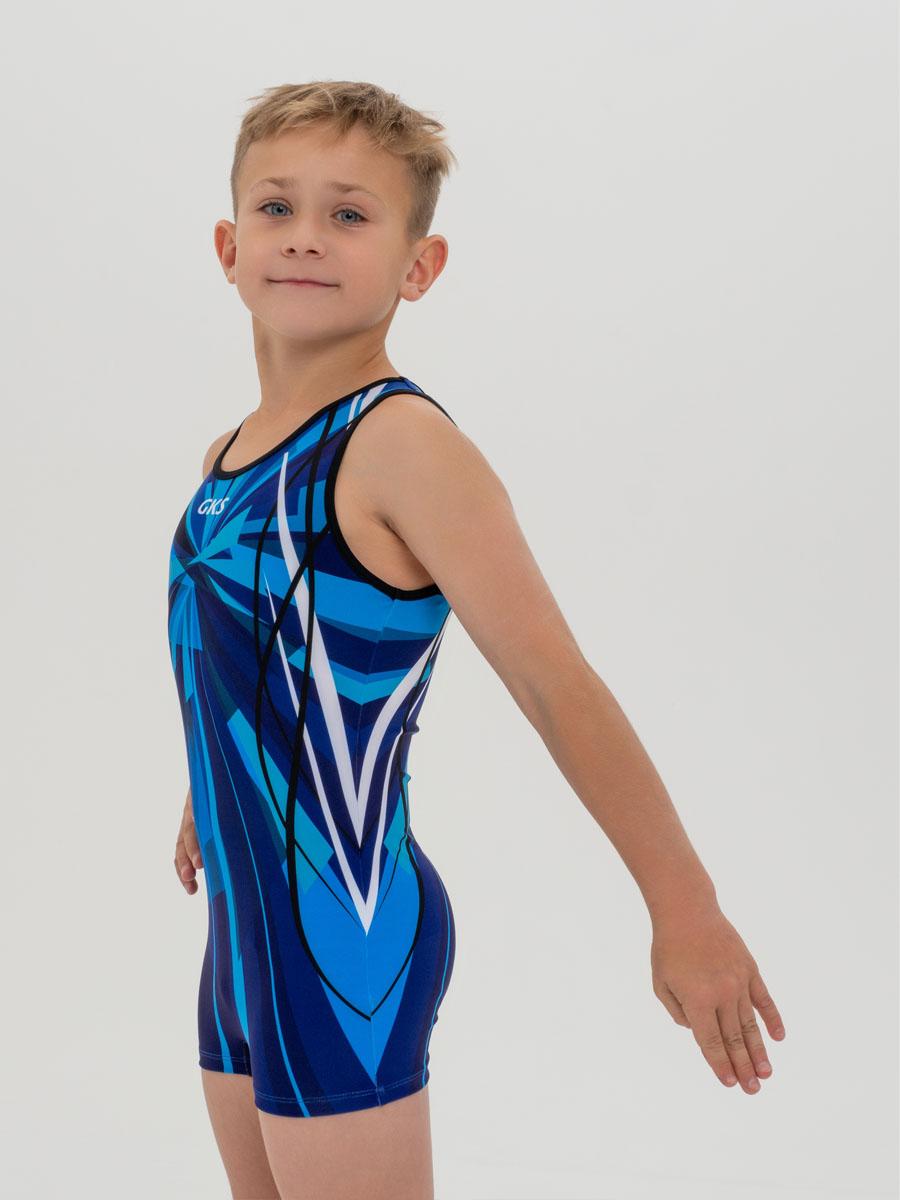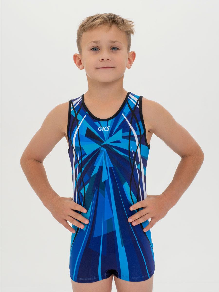 Купальник мужской для спортивной гимнастики GK Sport 201-15 сине-голубой без рукава