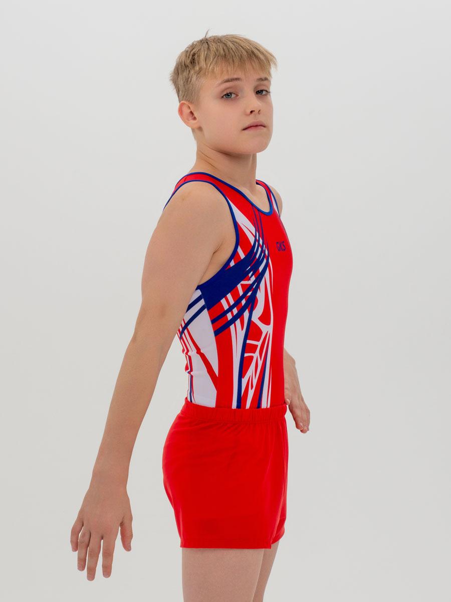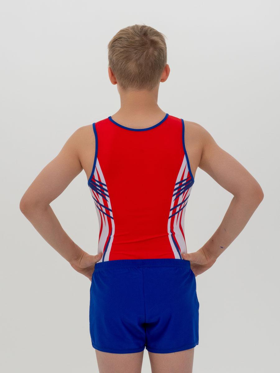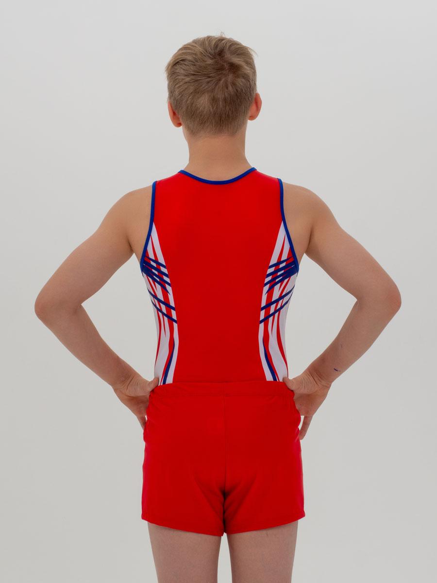 Купальник мужской для спортивной гимнастики GK Sport 202-23 красный с бело-синим рисунком без рукава