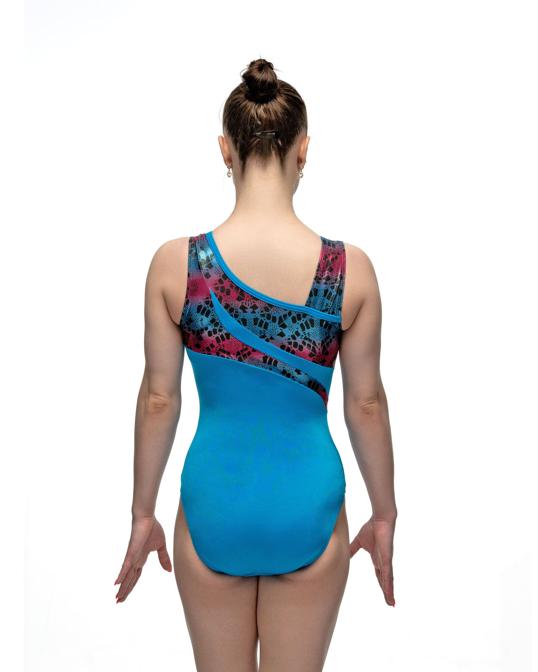 Купальник женский для спортивной гимнастики GK Elite 5462 голубой с цветными вставками без рукава