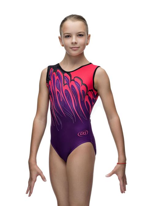 Купальник женский для спортивной гимнастики GK Sport RU-228 фиолетовый с розовым без рукава