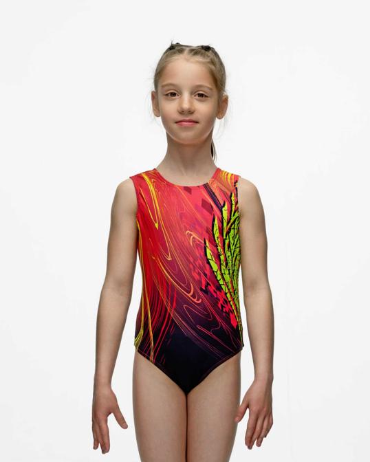 Купальник женский для спортивной гимнастики GK Sport 0133 жар-птица красный с черным без рукава