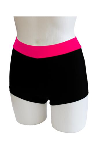 Шорты женские. Шорты идеальны для занятий спортивной гимнастикой, акробатическим рок-н-роллом, фитнесом, прыжкам на батуте и спортивной акробатикой. Стильные шорты с розовым поясом.Состав: 84% Нейлон,16% Спандекс