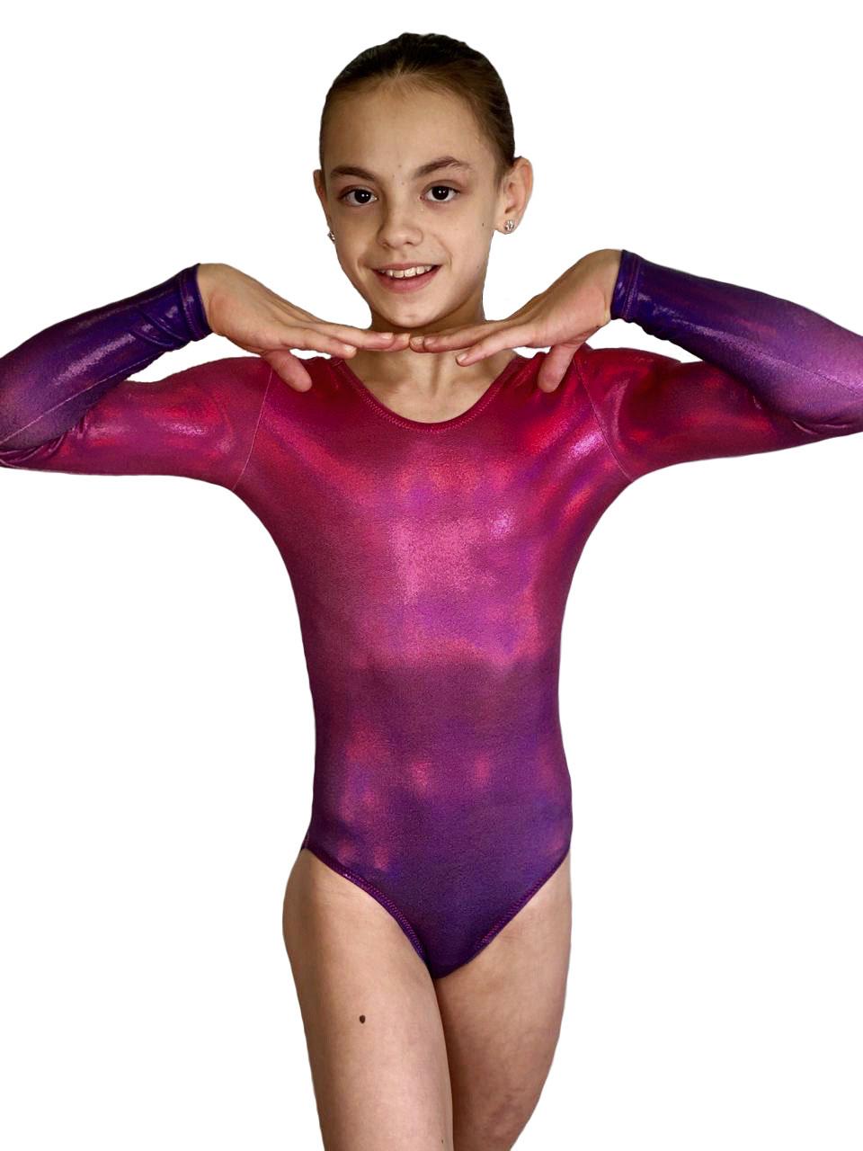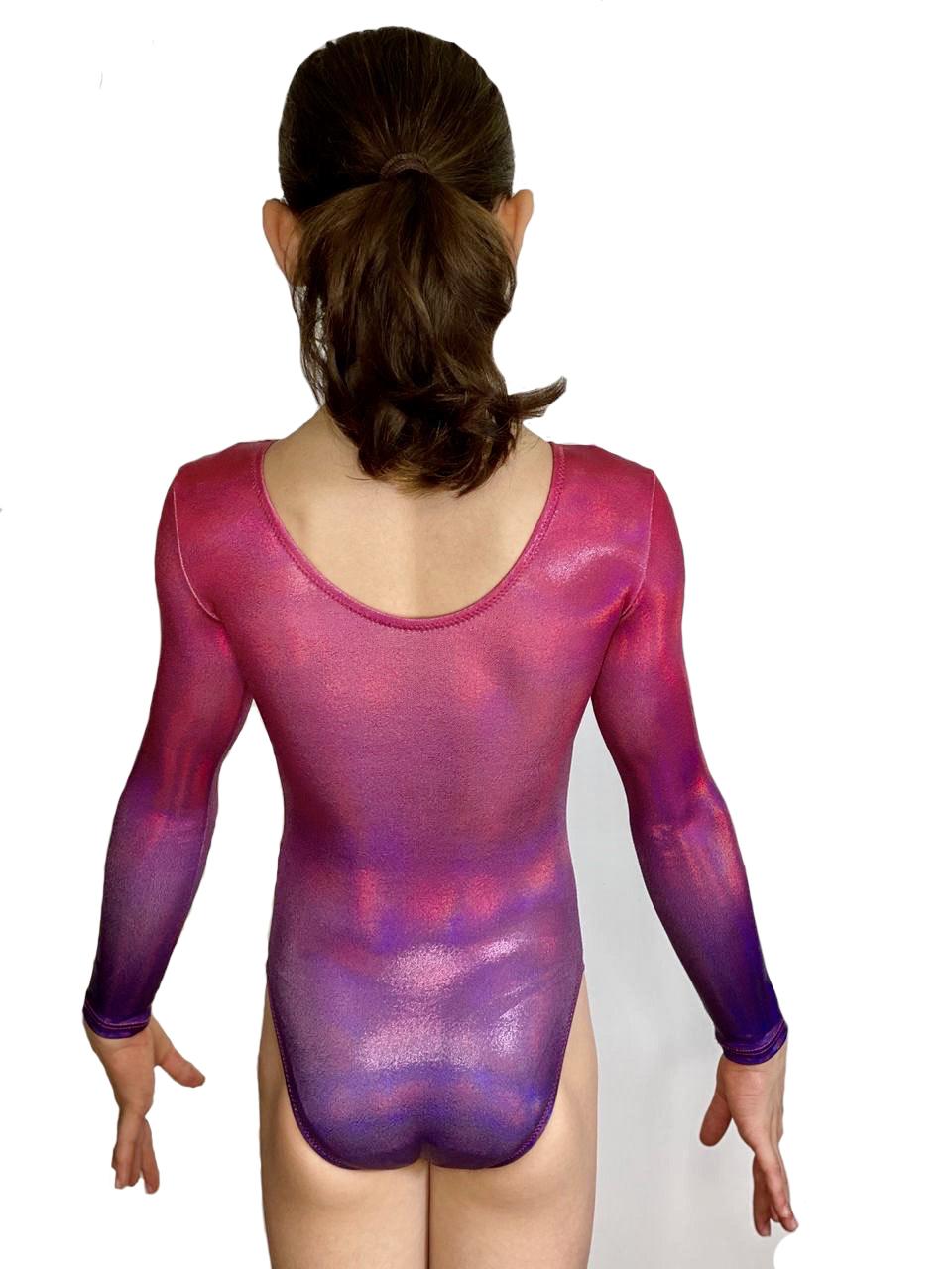 Купальник женский для спортивной гимнастики GK Sport Cherry Berry 310 градиент с переходом из фиолетового в малиновый с рукавом